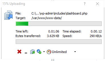 * Kemudian upload file wordpress ke directory www-data yang ada di /var/www/www-data, setelah itu klik ok