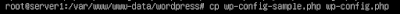 * Kemudian copy file wp-config-sample.php menjadi wp-config.php