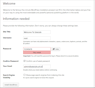 * Isi data data seperti gambar di bawah,lalu klik install wordpress
