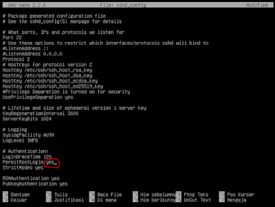 * Kemudian ubah menjadi “yes” tidak pake tanda petik, setelah itu save dengan ctrl+y,x enter