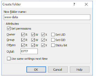* directory bernama www-data, set permissions atur seperti gambar di bawah, setelah itu klik ok